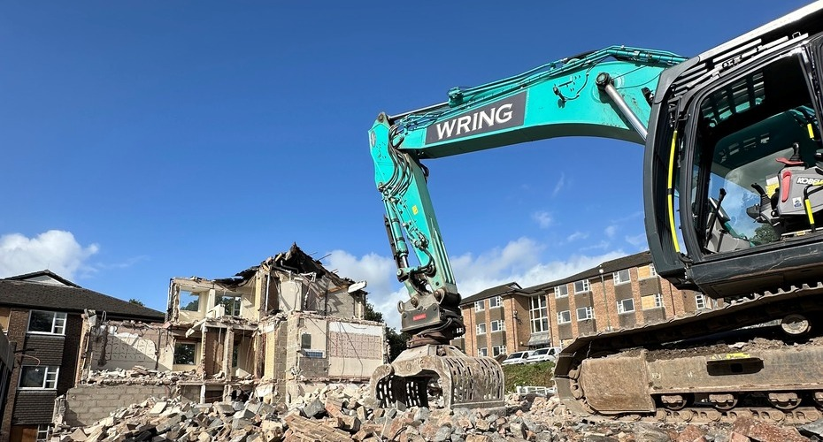 Image: demolition of Clydesdale Court, courtesy of the University of Exeter